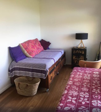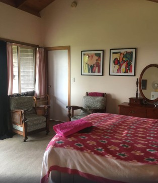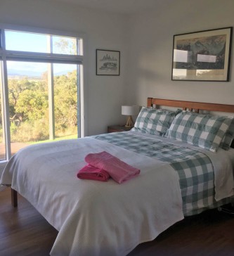 There are two bedrooms in the main house at Bright Glade, with accommodation for two more guests in the separate cabin.