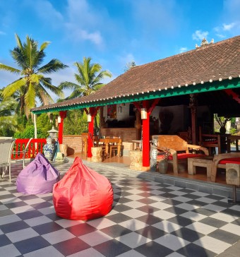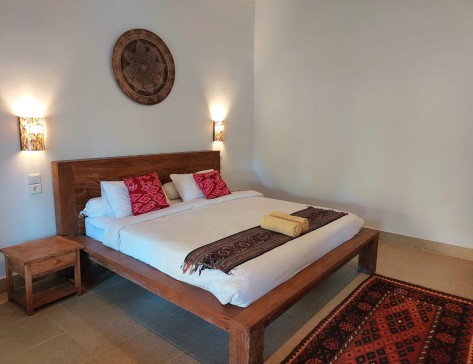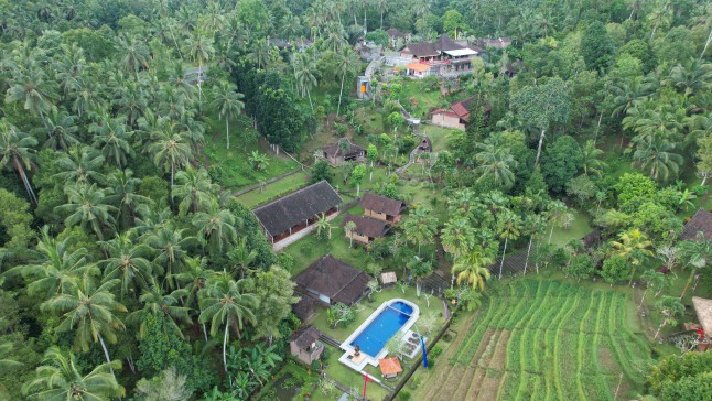 We are in a village 2 hours from the airport and 1.5 hours from Ubud, on the slopes of a volcano. This is a quiet and traditional part of Bali and the valley setting means we have lots of steps.