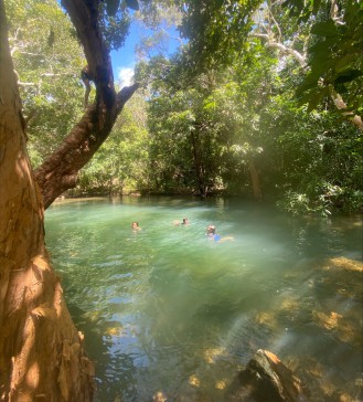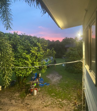 We live in an old Queenslander with 16 mango trees in our yard chickens that give us eggs every day. It`s similar to a farm life but on an island in the Torres straits.