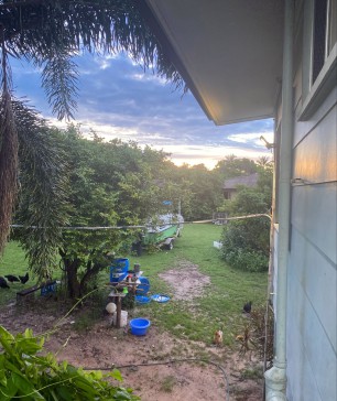 It`s on a piece of land with 16 mango trees and chickens it`s an outside life up here.