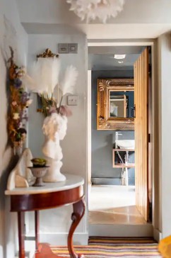 There is a family shower room and also an en-suite shower room in the second bedroom. There is also a luxurious bath in the main bedroom. Beautifully refurbished with quirky interior design throughout.