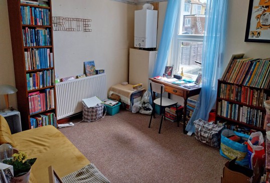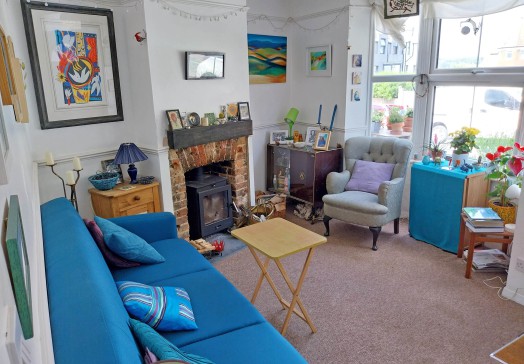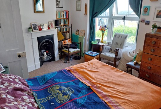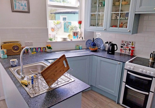 My home is a cosy, two-bedroomed terraced house on the West Hill in Hastings. On the ground floor there is a small sitting room with a large double sofa bed and a wood-burning stove, a newly-installed French shaker kitchen with a view onto the garden and a downstairs bathroom. Up the steep staircase, there are two double bedrooms (one of the beds is a comfortable sofa bed with an optional additional topper mattress). There is easy free parking on the street, which is quiet, apart from the seagulls!