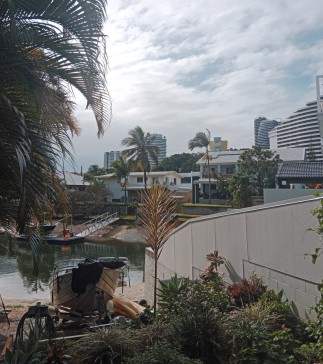 We have single story duplex with easy ground floor access front and back for those with mobility issues` (no stairs). Comfortable, tidy home with undercover outdoor area surrounded by gardens. It`s city living but in a quiet cul-de-sac on the edge of the entertainment precinct of Broadbeach. A 15 min walk over to the beach and restaurant area of broadbeach. Our home backs onto a tidal canal system which we kayak regularly. Across the Hwy (1km) and onto 30 km`s of beach side bike trails. It`s central to all entertainment options.