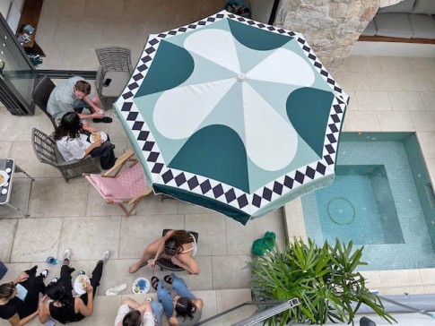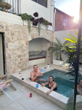There is a mancave/yoga room in the courtyard and a plunge pool/spa and grotto for relaxing in.