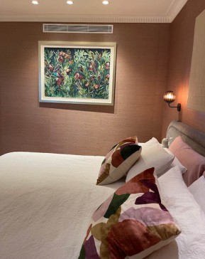 There are four bedrooms with queen and king sized beds. The main bedroom has a king bed with marble tiled ensuite, large shower and bath, heated floor and towel rails.