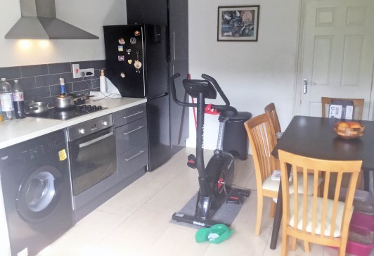 3 Bed house, drive, garage, kitchen dinner, with all amenities, large through living room, conservatory, south facing rear gardeh; exercise and other bikes.