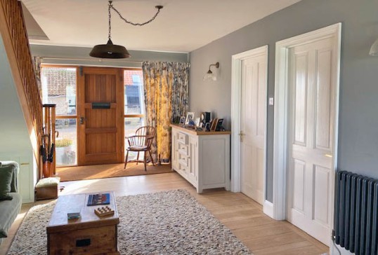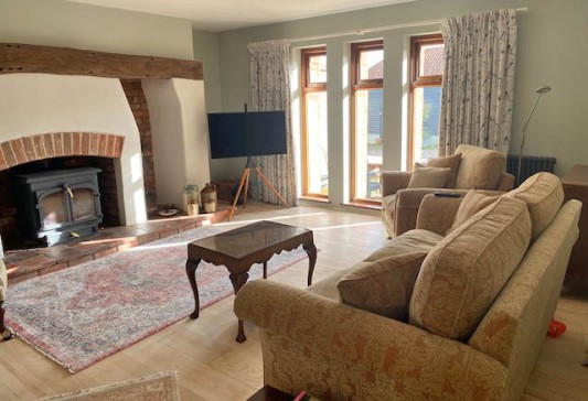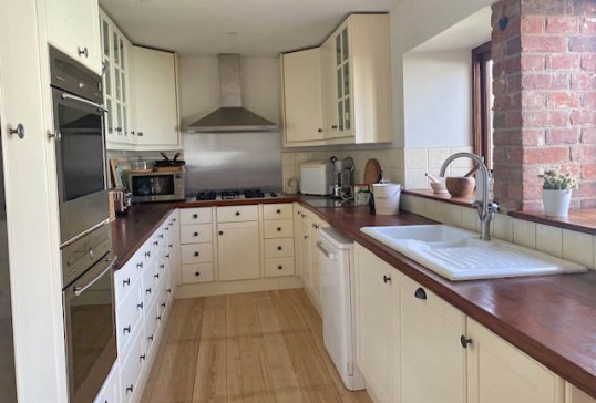 The two storey barn is light and spacious. Downstairs comprises: kitchen/diner with gas hob and electric cooker, spacious sitting room with wood burner, dining room, shower room, utility room and downstairs loo.