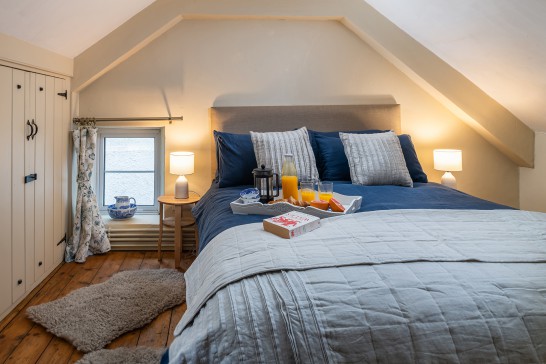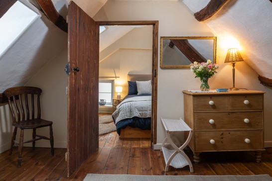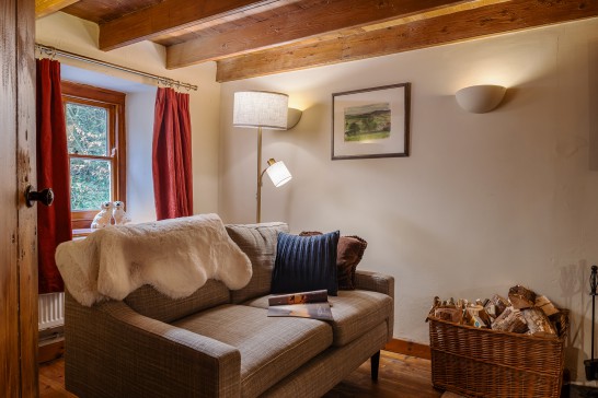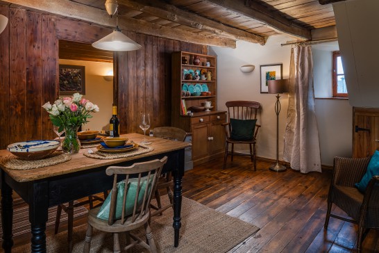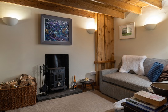 The cottage consists of a sitting room (with woodburning stove), dining room (with Rayburn), kitchen and newly installed shower room downstairs . Upstairs consists of a walkthrough study/dressing area to the main bedroom which has a king bed. There is also a double sofa bed in the sitting room for guests who do not wish to share a bedroom.