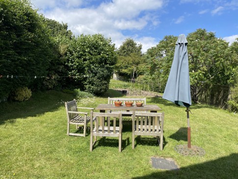 Outside is a large garden with garden furniture and a vegetable patch. There is off-road parking for 1 car.