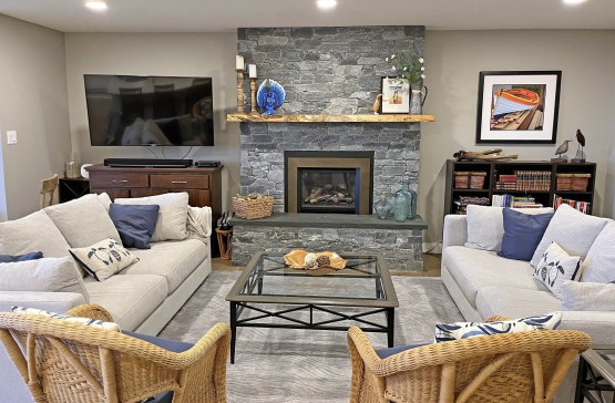 Enjoy the view from our sunny deck, or take a short walk down to the beach for a dip in the ocean. Our recently renovated 3100 square foot home has everything you need to relax and enjoy your vacation. There is a large open kitchen/dining/living area with a gas fireplace, beautiful picture windows and access to the large outdoor deck with two dining areas and two seating areas. The home is equipped with a heat pump to keep it cool in the summer and warm in the winter.
