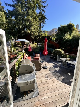 Our home is comfortable and easy to stay in. There is so much light; at the front from Bedroom #1 are views of San Francisco, the Bay, Golden Gate Bridge, Mt. Tam, Oakland, and out the back through French doors from the kitchen is a large deck with furniture, grill, heater, and umbrellas, and a beautiful garden beyond with a bench to sit and enjoy the views at sunset. It is a lovely building built 1924 with interesting architectural details of the era, but modern features for 21st century comfort. There are stairs to the unit, two flights in the interior and 1 flight at the exterior. We have good wifi, smart TV, toys for children and everything in the kitchen you will need. Laundry is in the garage, and there is parking for one car.