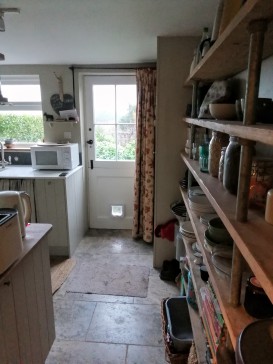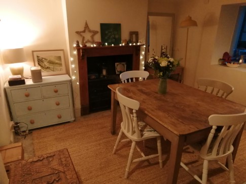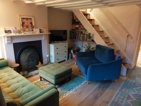Peaceful cottage, part of terraced houses built in 1820s for a community of weavers, each with its own allotment area, tucked away from roads on the edge of town. Easy parking on the road, with access up a footpath. On 3 floors, so maybe not the best if stairs are an issue. Long sunny gardens front and back with gorgeous sunset views. There's a strong community network here, so friendly neighbours will be on hand for local knowledge. Lotte the resident cat is independent but friendly. King size bed on 2nd floor, small double bed on 1st floor. Cottage ceiling and door heights, so if you're much over 6', be prepared to duck through doorways. Cosy cabin at the end of the garden is a good spot for reading or drawing. Depending on time of year, there will be veggies for you to enjoy.