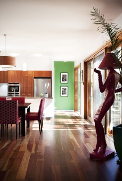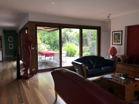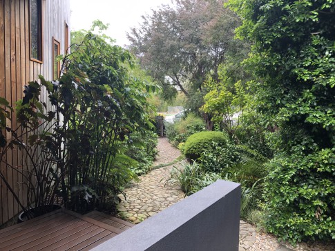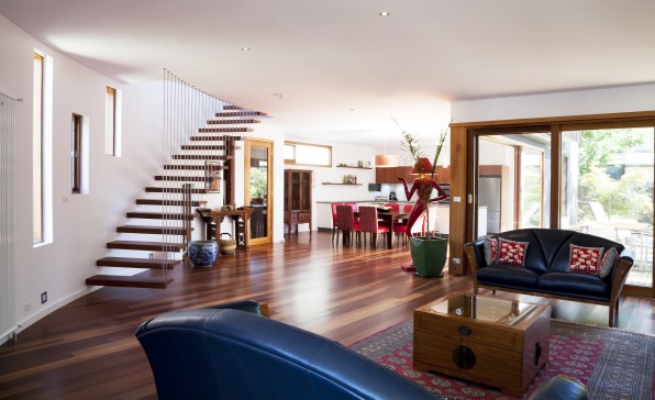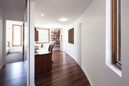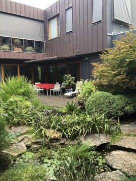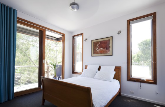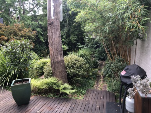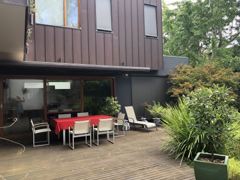 An architecturally designed sustainable two storey home with garden. There are three bedrooms, two bathrooms and a large study upstairs. The master bedroom has a walk-in wardrobe and a balcony overlooking a beautiful garden. Living areas, laundry and guest toilet downstairs.