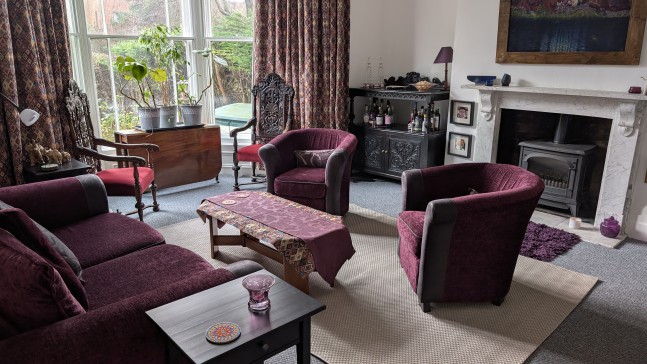 The rooms are large with traditional high ceilings and bay windows, and hung with a range of interesting art works.