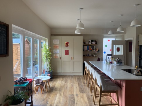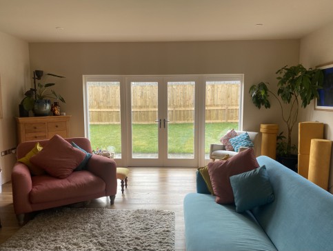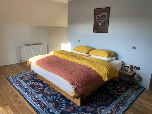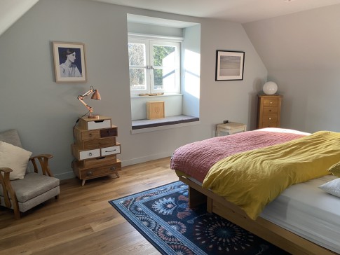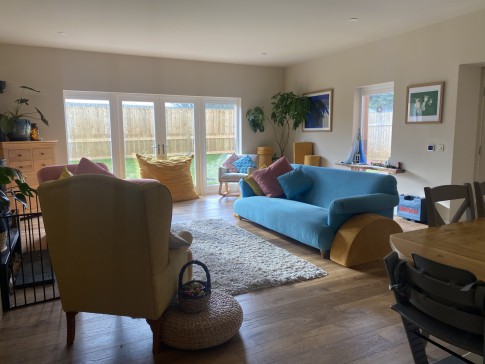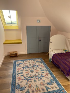Beautiful home just 10 minutes from the beaches of East Lothian. There is a large master bedroom with king size bed and ensuite, a double bedroom (with views to the sea) which has a petit double bed and two children's rooms that are currently set up with a cot and toddler bed. These could accommodate single mattresses if need be. There's a family bathroom and ensuite upstairs and a WC downstairs. French doors from both the kitchen and living room lead onto a lovely south facing garden and there's a car park for off street parking. Wifi, TV and projector, washer and tumble drier, dish washer etc.