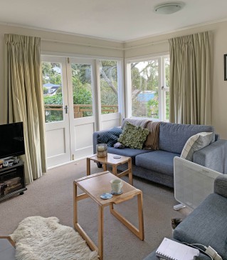 This cottage, on a quiet dead end street in the village of Eastbourne is on Wellington harbour with Wellington visible in the distance from the lounge window. It is a 30-40 min drive away. The cottage was likely built around 1900 and has been altered over the years with me being the last person to do so. The whole house has been fully modernised with increased insulation and some double glazing in addition. It is cosy in the winter and heated by electricity and a log burner.