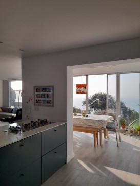 Our home has a large, open plan living room and kitchen with stunning sea views of the English Channel. We have an adjoining office with a bed pod and sea view. We also have a TV room/ snug with a side return for washing clothes etc connected to it. Leading up from the hallway and downstairs bathroom are stairs to two double bedrooms with amazing views. One has an ensuite bathroom. The third bedroom has a recently designed bed pod with desk and coloured lighting! Opposite is a separate bathroom. There is a long, spacious balcony with seating overlooking the sea. We have a terraced garden with three levels, but we generally use the top grassy level that has a trampoline and area to sit and gaze at the sea!