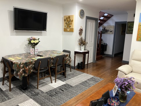 Downstairs there is a large, spacious well-equipped kitchen, dining area, laundry and toilet. Outside at the back there is an entertaining area which has a BBQ with a lovely surrounding garden.