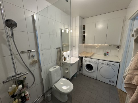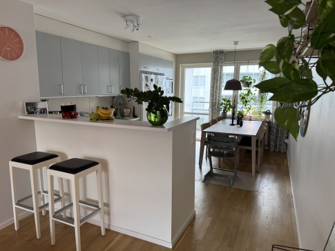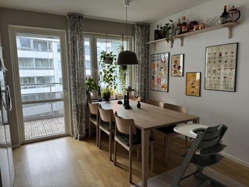 Our home is modern, light and airy two bedroom apartment with an open plan living room and generously sized kitchen. We also have a large balcony with a dining area, sofa and grill (a must have for any self-respecting Swedish home). There are two bedrooms, the master bedroom has a queen size bed and the second bedroom has a sofa bed (also a queen size) which is very comfortable, as well as a cot. The bathroom has a walk in rainshower along with a washer and dryer. We have an 18 month old daughter, so our home is also perfect for young children and families.