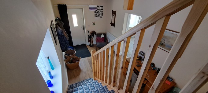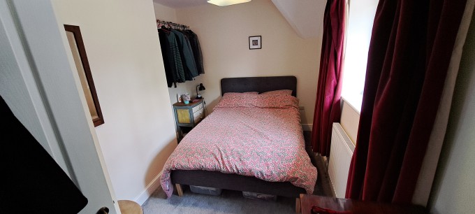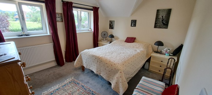 Upstairs. Two bedrooms both with double beds, bathroom with over the bath shower & WC.