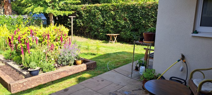 Recently converted semi detached house with 2 cats that require feeding but come & go via their cat flap. My brother & wife live next door, their garden stretches behind ours & the front gardens & driveway are shared. Next to them is my nephew & family who offer paragliding lessons & experiences. Possibility of borrowing 2 electrically assisted bicycles. Our home is quiet, comfortable, warm, bright & airy. Full gas central heating, a well equipped kitchen, internet, a large garage & a pleasant newly planted out garden with patio bordered by a mature beech hedge & a newly planted Golden Privet hedge to rear & left side.