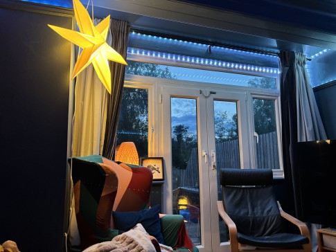 Our living room is cosy with a 65” tv, Netflix, prime and Disney.