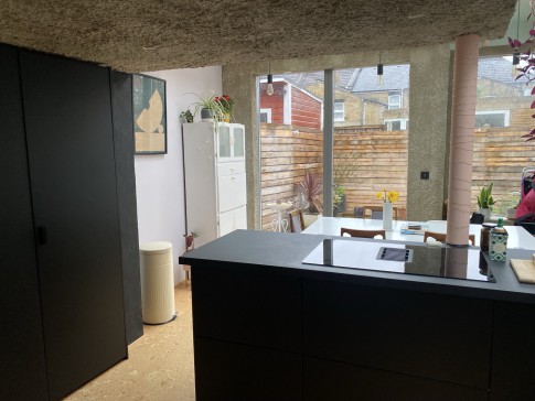 Traditional terraced house with a modern kitchen extension. Two bedrooms: one large with Queen size bed and fitted wardrobe and two large sash windows, Second room smaller with a double bed and a triple wardrobe (which is empty).