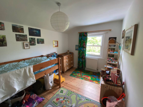 - The spacious double living room has large windows and good light, with one room that has a piano and toys and books for children.
