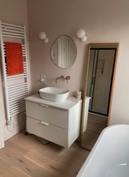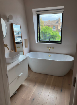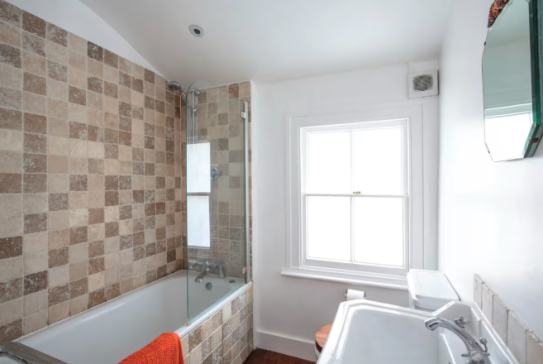 -The two bathrooms both have a shower, bath & toilet, one of them is en suite to the top floor bedroom