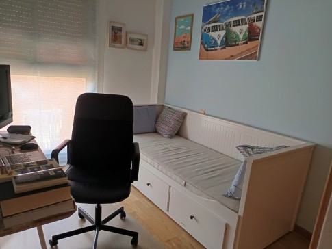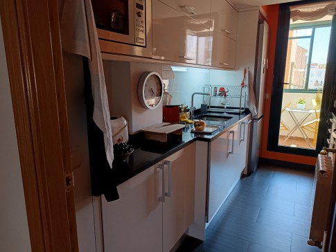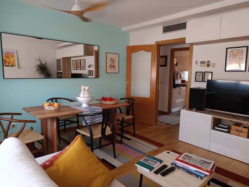 Two-bedroom apartment on the second floor (with elevator and garage). 1 bathroom with shower. Fully equipped kitchen, with a small gallery. Large living room. Located in a very quiet community of owners, with only 4 neighbors on the block. Air conditioning and heating.
