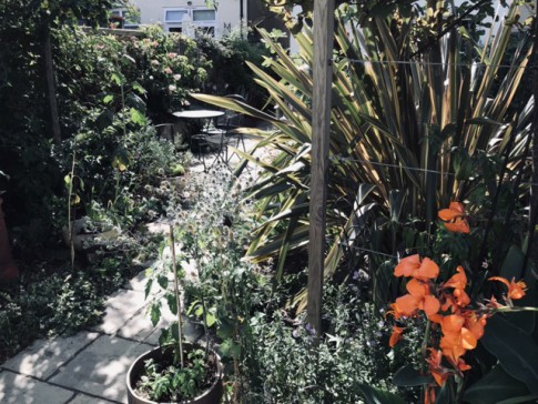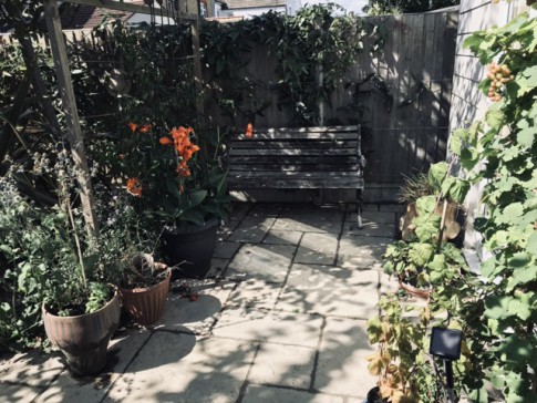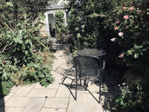 There is a small rear garden with benches and a small table and chairs; the garden room serves as our studio.
