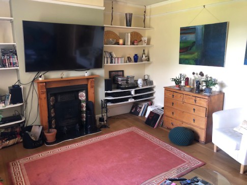 Upstairs flat, with mostly wooden floors and carpets/rugs