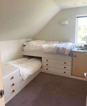 The first floor consists of a large double bedroom, a small double bedroom, a children`s bedroom with 2 built in beds and a large family bathroom.