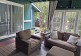 Big beautiful covered outdoor veranda with couch and dinning table