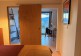 The bedroom is located just off the living area and has a 1.6m-wide bed and open hanging wardrobe. The contemporary bathroom features a walk-in shower, wall-hung basin, WC and heated towel rail.