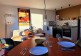 Sliding doors open directly onto the terrace, creating an easy indoor-outdoor feel. The open-plan living space combines the lounge, dining area and kitchen. The lounge features a comfortable three-seater sofa (which can also be used as a sofa bed) and an armchair. The well-equipped kitchen includes a four-ring induction hob, electric oven, compact dishwasher and under-counter fridge, along with cookware, utensils, plates and serving ware. A dining table with two chairs completes the space.