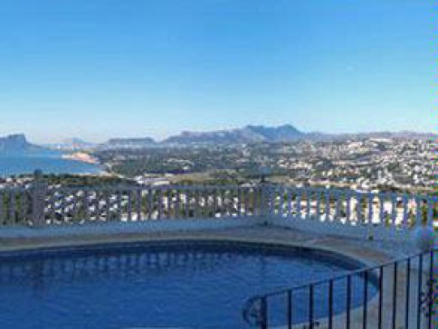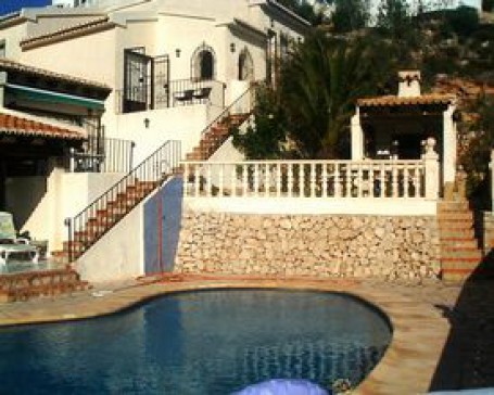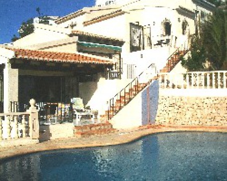 Holiday house with pool in choice position on hill with wonderful panoramic views. Car needed (can pick up at Alicante airport). 10 mins from shops and beaches. Very difficult to photograph but, believe me, you will like it. Photo shows view from house, but even this does not do it full justice. Pool maintenance 2x week.