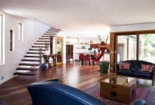 The house features various recycled timbers, some polished concrete...