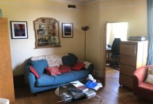 Upstairs flat, with mostly wooden floors and carpets/rugs