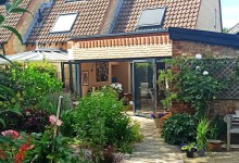 I live in a lovely modern timbered bungalow in a leafy suburb of no...